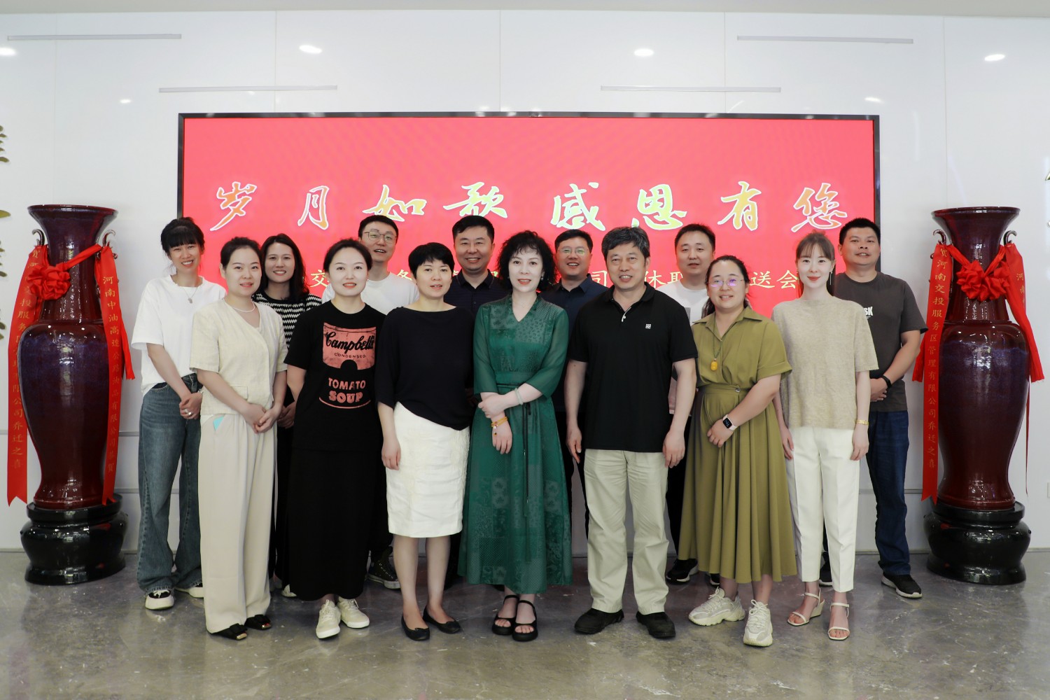 7月28日,公司舉辦“歲月如歌 感恩有您”退休職工歡送會(huì),公司黨委委員、副總經(jīng)理廖軍,原交發(fā)集團(tuán)和鼎公司副總經(jīng)理高納,公司黨群工作辦公室、綜合事務(wù)辦公室、人力資源部等相關(guān)部室人員參加會(huì)議。