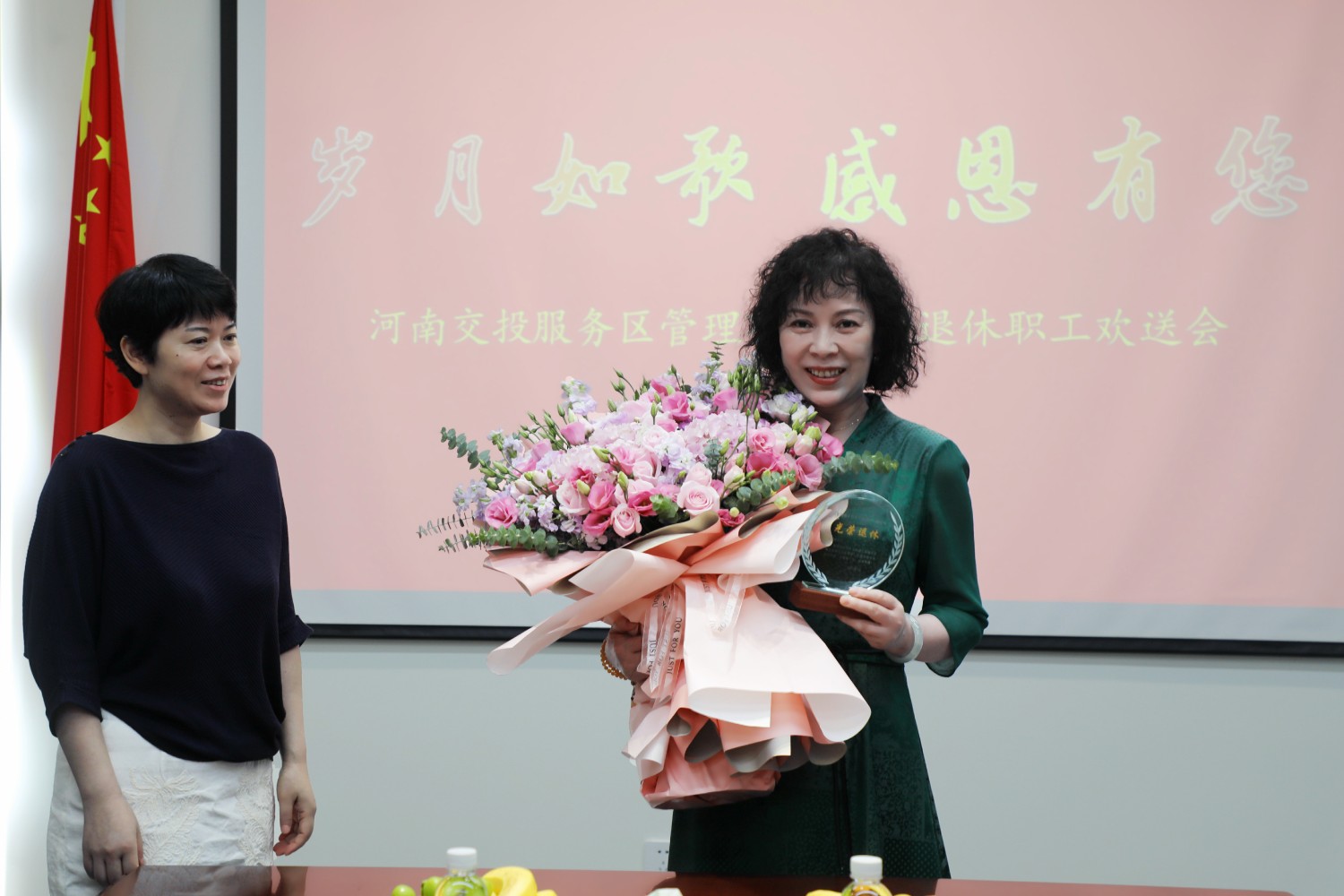 歡送會(huì)上,高納副總經(jīng)理為退休職工送上了鮮花和紀(jì)念品,表達(dá)了真摯的祝愿,希望退休職工繼續(xù)保持高昂樂觀的生活熱情,退休不褪色,一如既往關(guān)心支持公司工作,積極建言獻(xiàn)策。