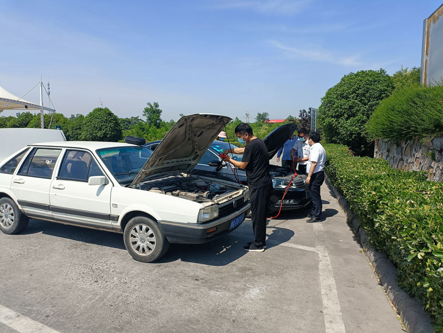 2022-05-18 作者:5月18日,鄭州南服務區值班人員巡查至東區下廣場處發現一名神態焦急的男子跑來尋求幫助,原來是車子打不著火,核酸證明也馬上超過48小時,十分心急。了解情況后,服務區值班經理立刻上前幫忙查找原因,憑著經驗判斷是電瓶電量不足,便通知服務區駕駛員開來公車,拿出專用電瓶連…
